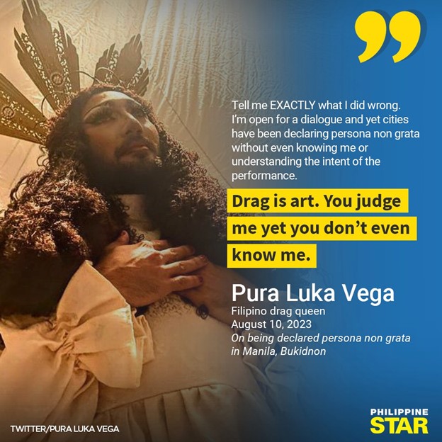 In the realm of unexpected headlines, the pinnacle was Pura Luka Vega’s proclamation as persona non grata due to his Drag Art. In a predominantly Catholic country, her boundary-pushing performances offended sensibilities, leading to the grand title of ‘persona non grata.’
