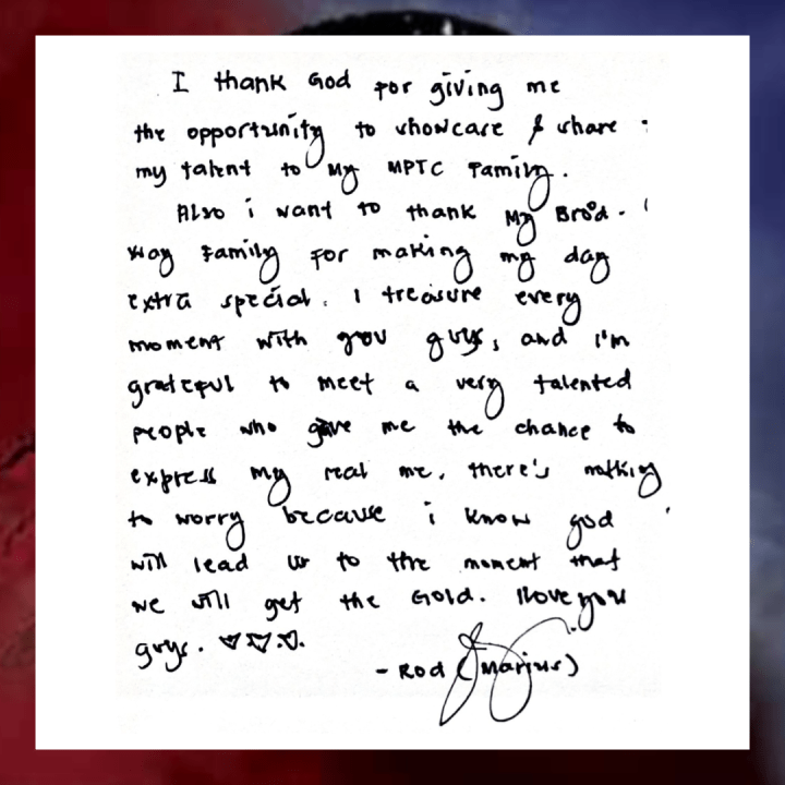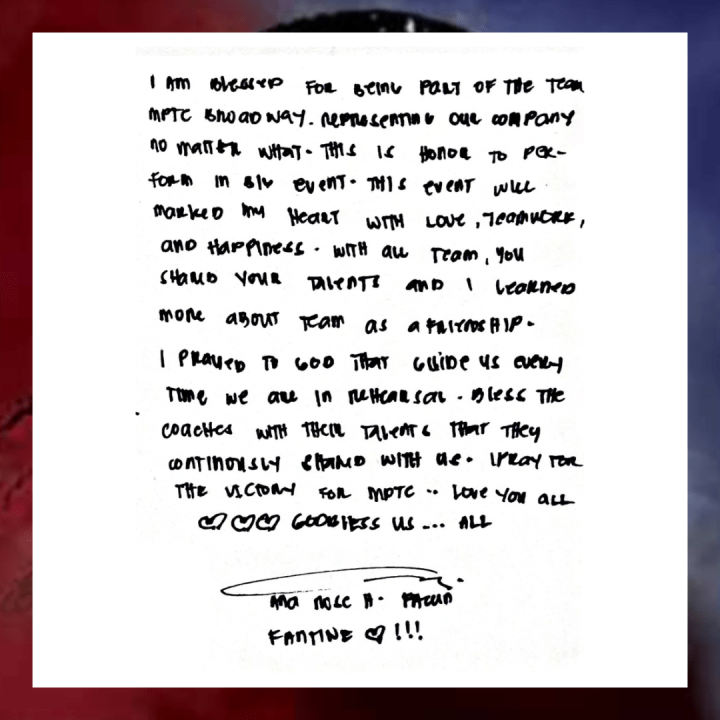October arrived, and with it, the competition. During our huddle, we were reminded of how great and generous our God is for bestowing upon us these gifts, and we were deeply humbled by the opportunity to use our talents to inspire, uplift, and bring joy to the audience through our craft. As the curtain rose, we felt a wave of nerves—but also a deep sense of pride. We weren’t just individuals anymore; we were a team, a family, soulmates telling a story together. Every note we sang and every step we took felt like a celebration of our journey.