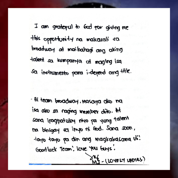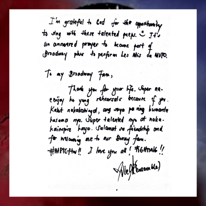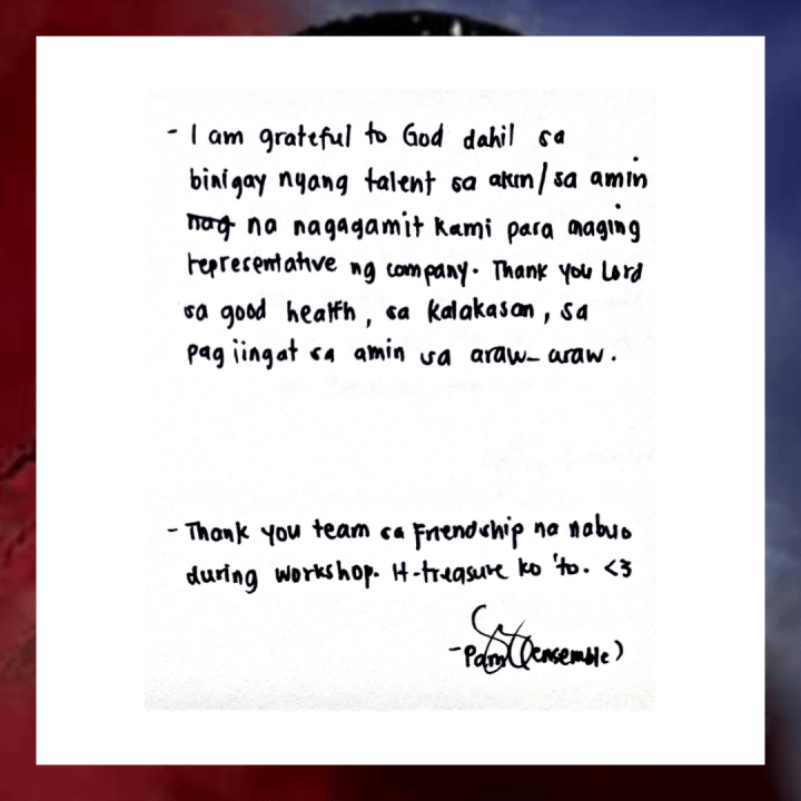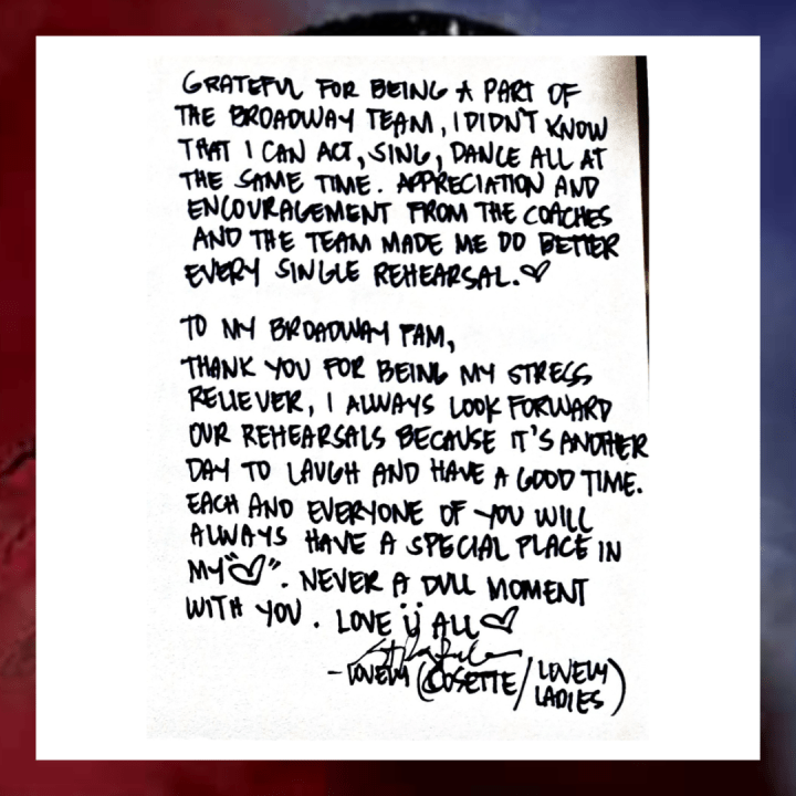 As remembrance before we part ways, I asked my Broadway Fam what they were grateful for with being part of MPTC’s MVPO Broadway Team. These were the heartfelt messages from my co-actors and mine.