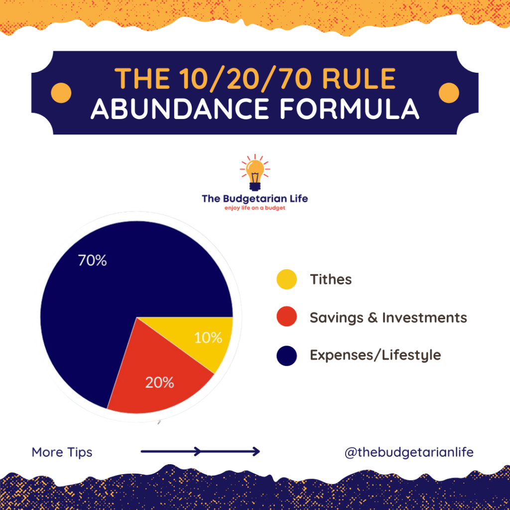 Personally, I have found the 10/20/70 abundance formula helpful in managing my finances. I allocate 70% of my income for daily expenses, 20% for savings and investments, and 10% for tithes. This is supported by a spending tracker mobile app, which helps ensure that I stay on track and monitor whether my budget allocations are being followed consistently. This combination of mindful budgeting and digital tracking has helped me become more financially disciplined and intentional with how I manage my income.