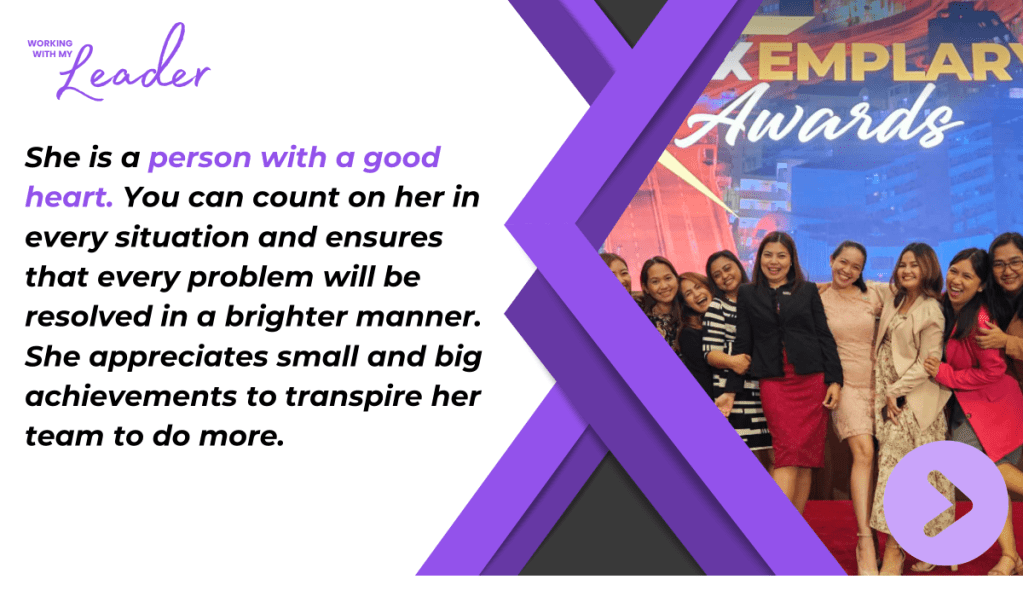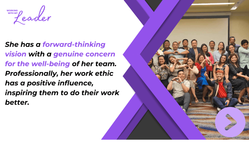 Aside from her technical expertise, we see how she values her “anaks”. Just like a stage mother, she cheers on her team and celebrates wins- small and big wins, alike. She makes time for one-on-one conversations and provides timely constructive feedback. As a leader, Ms. Jas empowers each one to make decisions and act as needed and within the scope of the job. And, like a mom, she always has our back.