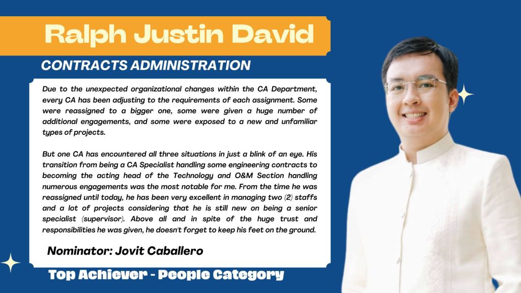 - Ralph Justin David, Contracts Admin
